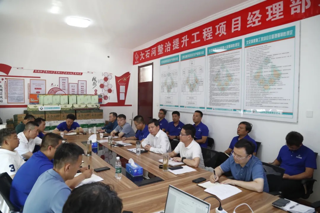 6月8日,集团公司党委书记潘寿林、党委副书记、工会主席李洪涛、总经济师孟玮、副总经理李岩带领机关相关部门负责人一行到房山河道整治提升项目调研指导工作,并慰问了节日期间坚守岗位的项目指挥部和参施单位员工。集团领导现场查看了工程施工情况,并组织召开调研专题会,听取了项目指挥部和参施单位关于工程进展情况的汇报。集团领导要求所有参施人员要提高政治站位,充分认清工程建设的重要意义,以党建引领工程建设,发扬城建铁军精神,精心组织施工,迅速形成大干局面。同时,要加强监督检查,完善应急预案,确保项目在汛期抢工阶段质量、安全、进度、经营效果等全面受控,实现项目按期高质量履约。